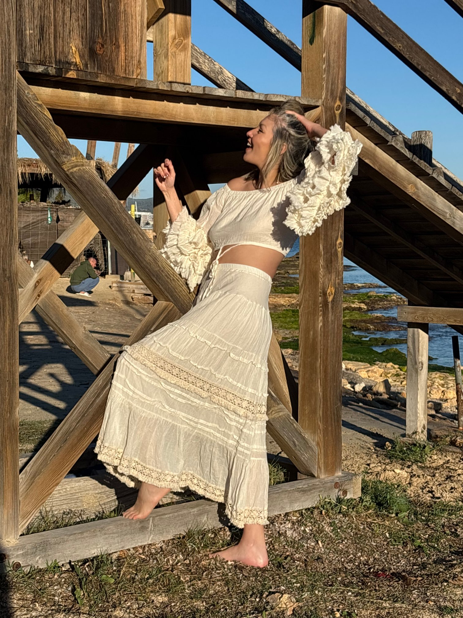 La Falda‑Short es una prenda versátil y estilosa que fusiona la frescura de una falda con la comodidad de un short, perfecta para la temporada primavera‑verano. Esta pieza combina diseño y funcionalidad, ofreciendo un look femenino y actual sin renunciar a la libertad de movimiento y la comodidad que aportan las prendas ibicencas. Su estilo se integra de forma natural en la estética boho chic mediterránea característica de la colección de Ibiza Fashion Secrets, donde prendas ligeras, cómodas y fáciles de combinar son protagonistas.